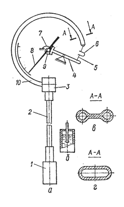 изменение давления на манометрическую пружину. Держатель соединяет внутреннюю