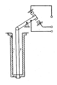 1- трубка из металла с большим коэффициентом температурного расширения; 2 - стержень из металла с малым коэффициентом температурного расширения. |