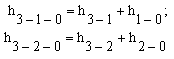 Діаметри труб та втрати напору кожної ділянки визначаються розрахунком або за допомогою таблиць 7.1 та 7.2. Після цього необхідно визначити втрати напору в півкільцях, які розділяють кільце за напрямками руху води, тобто кожне півкільце починається з точки живлення та закінчується точкою зустрічі потоків. Для даного прикладу (рис.7.2) перше півкільце складається з ділянок 3-1-0, а друге – з ділянок 3-2-0. Ділянки в півкільці між собою з’єднані послідовно, тому втрати напору в півкільці можна визначити як суму втрат напору на ділянках, що складають це півкільце, наприклад: